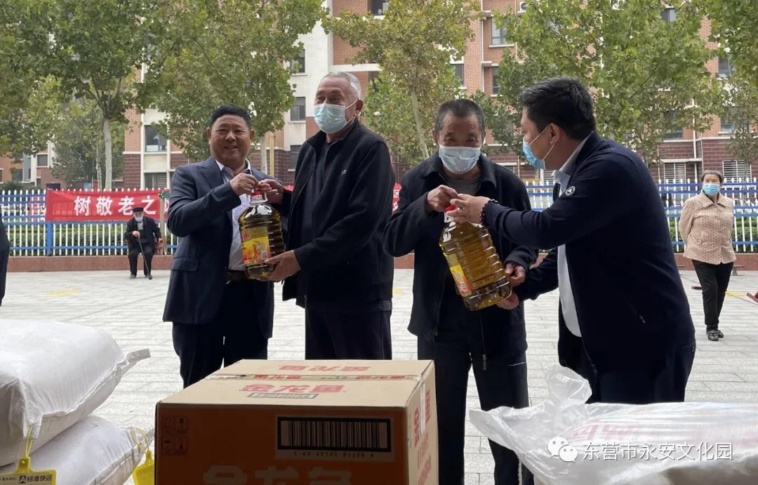 九九重陽節(jié),濃濃敬老情。為弘揚(yáng)中華民族尊老、敬老、愛老、助老的優(yōu)良傳統(tǒng),愛心企業(yè)永安文化園在東營經(jīng)濟(jì)技術(shù)開發(fā)區(qū)綜合部指導(dǎo)下,來到沙營老年公寓,開展了重陽節(jié)關(guān)愛老人獻(xiàn)愛心活動(dòng),為這里的老人們送來了米、面、油等生活用品,送來了一份誠摯的問候與祝福。